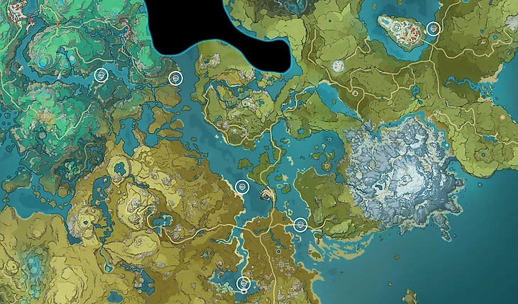 Локация: Сидровое озеро, Винокурня «Рассвет» (Мондштадт), Гавань Ли Юэ (Ли Юэ), Остров Рито, Деревня Косэки (Инадзума), Разлом: Подземные шахты (Безымянные руины)
