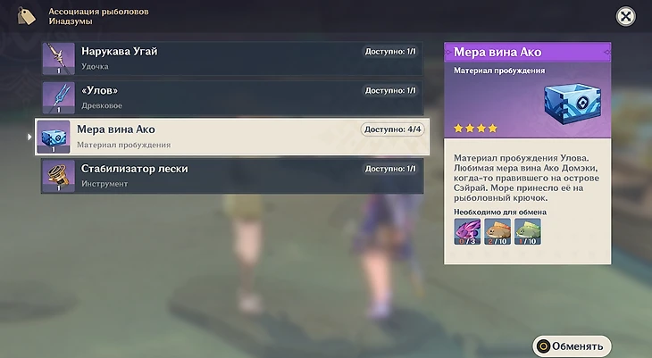 На аккаунт можно получить только один «Улов». Материалов для ее пробуждения – «Мера вина Ако» – 4.