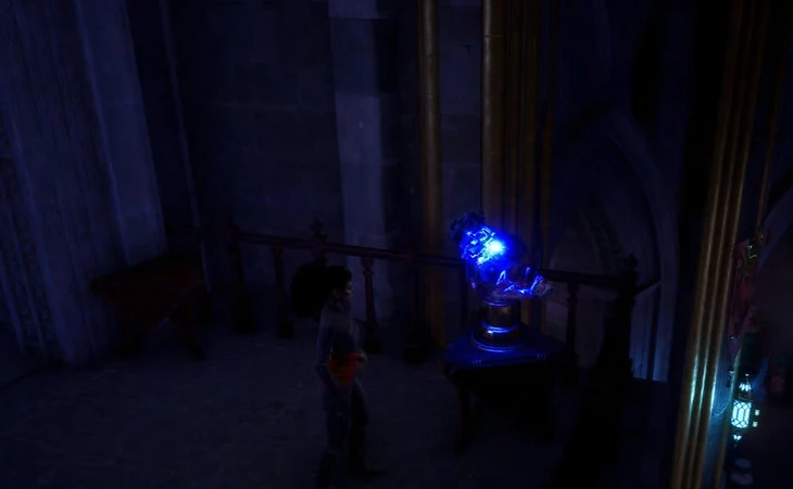 Когда вы доберетесь до балкона библотеки, то сможете залутать сундуки и обнаружить артефакт, похожий на тот, что был у Соласа в Inquisition. Комната похожа на магию из Хогвартса с парящими полками и огромной астролябией в центре.