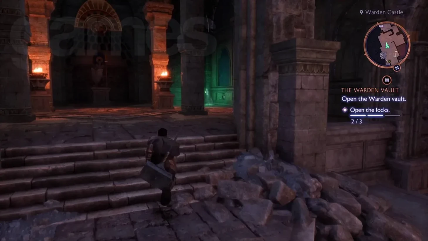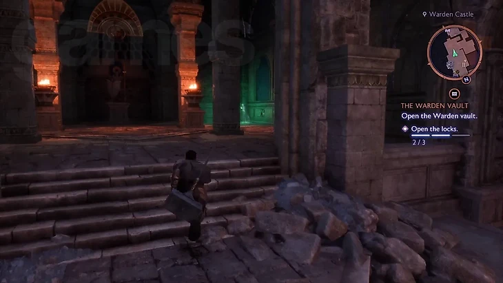 Хранилище находится уровнем ниже главного зала замка. Чтобы добраться туда, спуститесь по западной лестнице главного зала, уничтожьте мешающий драконий камень и продолжайте путь. Вы найдете запечатанные двери, которые требуют разблокировки всех трех замков.