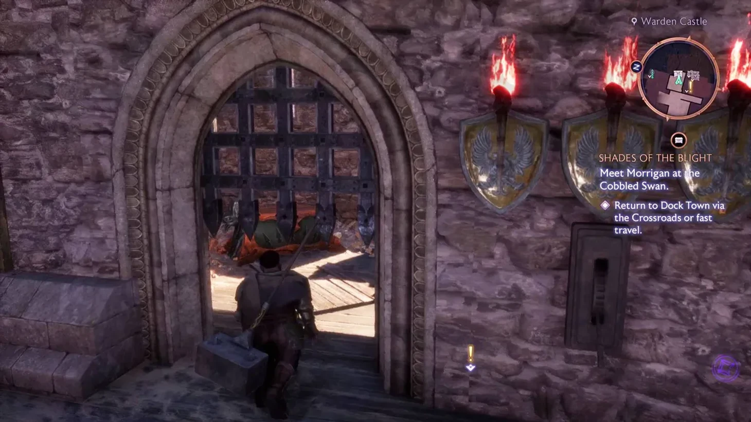Пройдите через открывшиеся ворота, активируйте печать Серого Стража на стене, чтобы завершить первую часть квеста.