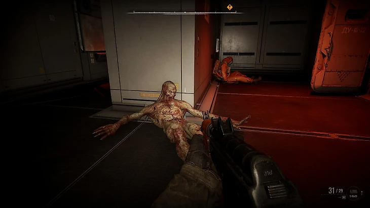 С мутантами схожая история. Первый же кровосос мирно гулял по лаборатории, пока я стрелял ему в спину. Затем бездыханно прилег посреди коридора. После таких кошмаров жаждал включить F.E.A.R., которой скоро исполнится 20. В плане перестрелок и ИИ великий шутер уничтожает «Сталкера».