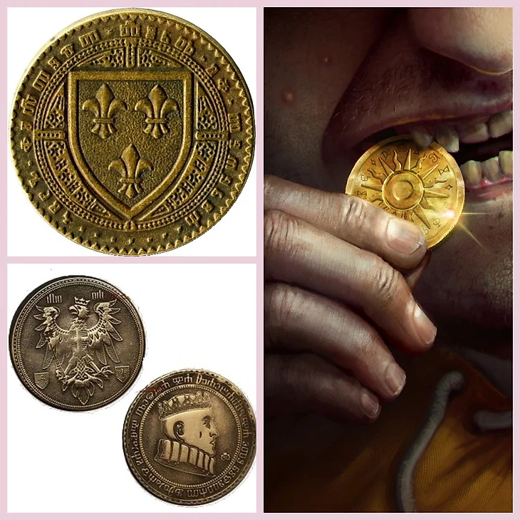 Вполне возможно, разработчики показали ковирский безант – самую надежную и дорогую валюту Континента. Эту версию поддерживает художник Хью Хэммонс. Таким он представил фанатский проект TheGoldenNorth к «Ведьмаку 3» – еще с Геральтом.