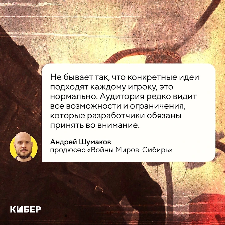 У меня на компьютере есть демо-билд «Войны миров: Сибирь». Пока это альфа, в которой есть баги: звук не всегда смикширован, в плане анимаций кто-то дергается не так, как надо. Главное, нам не стыдно. Делаем сбалансированный игровой опыт с достаточным, на наш взгляд, количеством механик, оригинальной историей и подходом, которого на российском рынке мало.