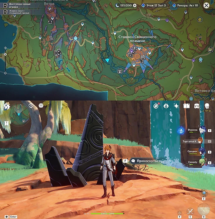 Чтобы вступить в схватку с Солидарностью Потапо, вам нужно отыскать особый артефакт – Тотем Ночного духа. Эта загадочная реликвия расположена к западу от Стадиона Священного Пламени, рядом будет водопад. Примерно в том же направлении, но чуть дальше на запад, находится телепорт.