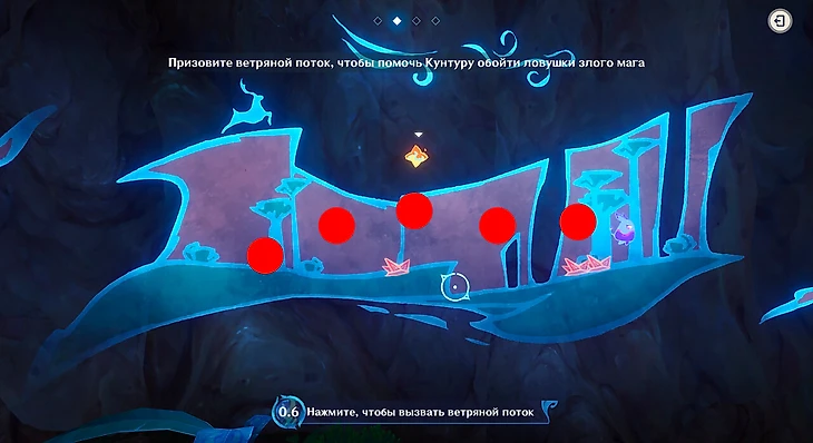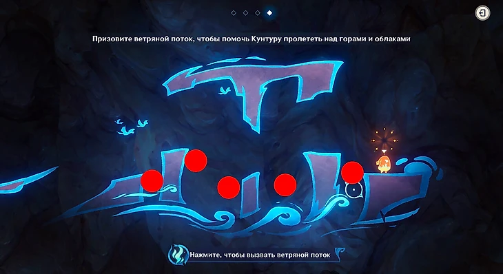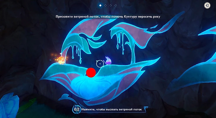 Откроется проход вниз, спускайтесь и посмотрите небольшую катсцену. Нужно провести героя с помощью воздушных потоков. Клик по экрану создает воздушный поток, герой двигается автоматически. Поток создается в месте, где кликнули, поэтому будьте осторожны. На первом уровне можно сделать всего один.
