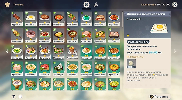 Яичница по-тейватски и тейватская хрустящая яичница (Беннет) – 1 яйцо;