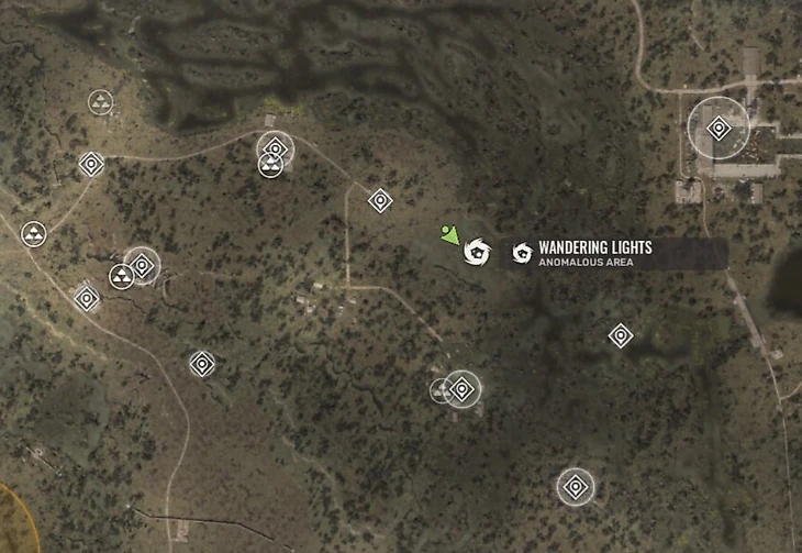 «Странную Воду» можно обнаружить в аномалии «Блуждающие Огни», расположенной в восточной части Затона. Искатели могут добраться до этого места, двигаясь строго на восток от базы «Убежище» на Диких Островах, хотя путь неблизкий. Прибыв на локацию ночью (около 22:00), вы заметите зеленоватые кислотные шары, парящие в воздухе. Однако при приближении к ним окружающее пространство погрузится во тьму, и эти светящиеся сферы станут единственным источником света.