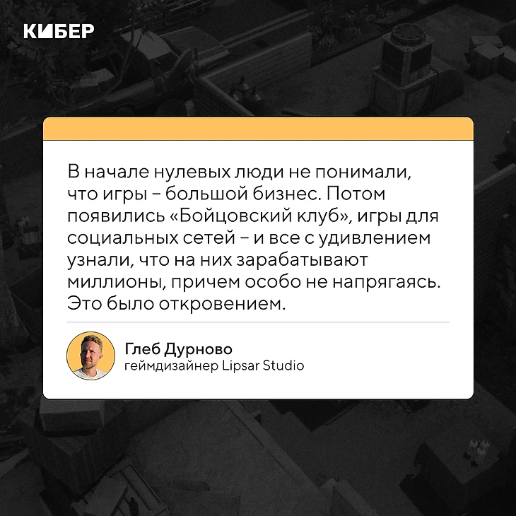 Даже в начале нулевых люди не понимали, что игры – не только увлечение, но и большой бизнес. Потом появились «Бойцовский клуб», игры для социальных сетей – и все с удивлением узнали, что на них зарабатывают миллионы в месяц, причем особо не напрягаясь. Это было откровением – как для моей семьи, так и для общества.
