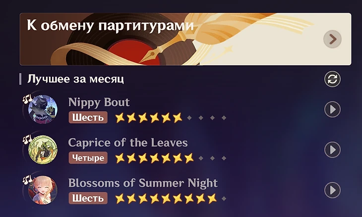 Партитуры от других игроков вы можете найти в разделе «К обмену партитурами».