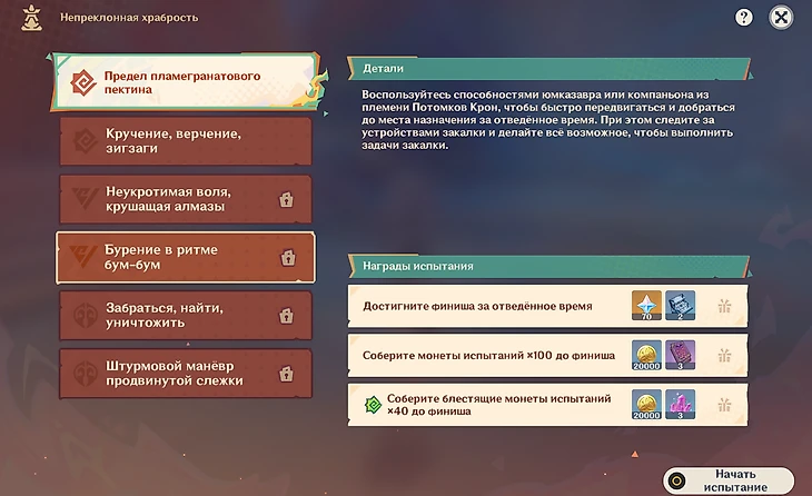 Испытания открываются на первый, третий и пятый день события. В них вы играете за заврианов и проходите миссии племен Натлана.