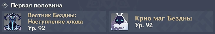 В первой половине придется сначала сразиться с парой Крио магов, в следующую очередь – с Вестником. Когда его здоровье достаточно истощено, Вестник применяет на себя ледяной барьер, уязвимый к Пиро. У магов тоже есть щиты.