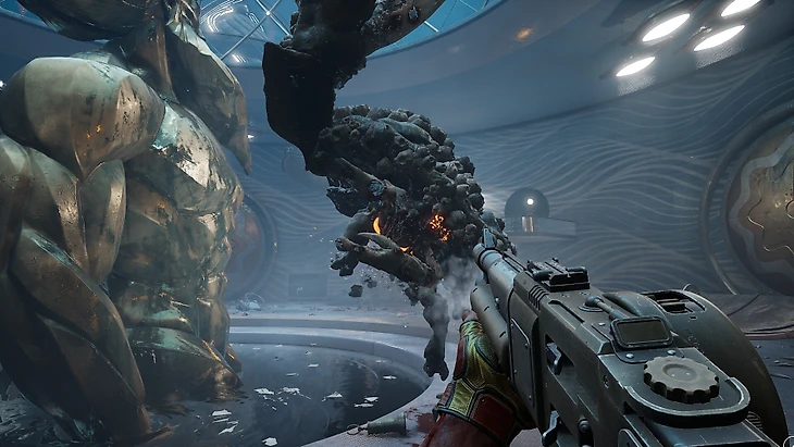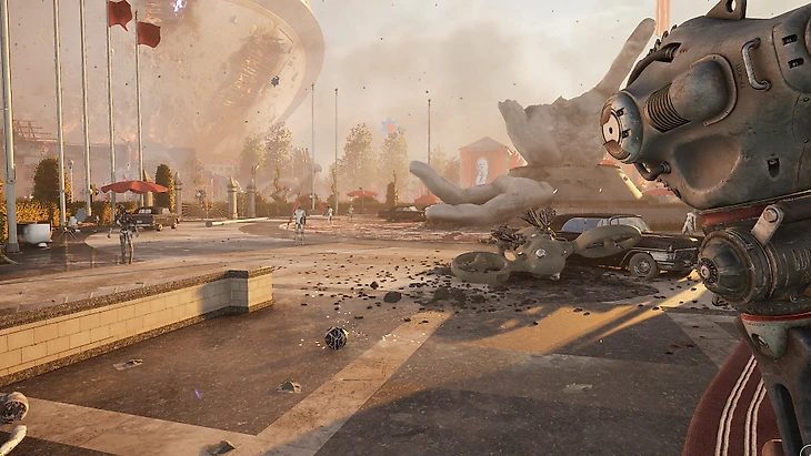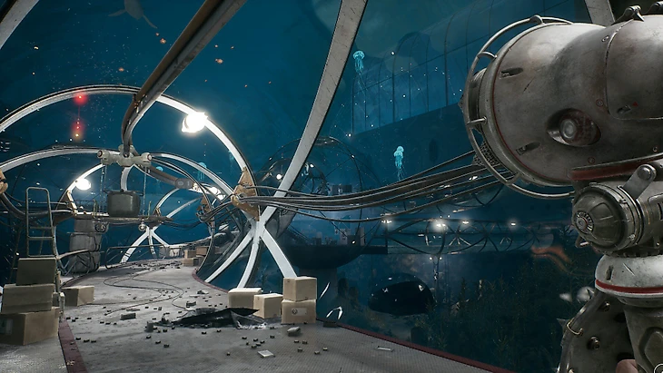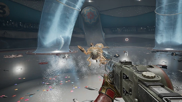 DLC вообще ставит на разнообразие и драйв. Бегаем вокруг разрушенной сталинской высотки, а через полчаса погружаемся на морское дно. Уворачиваемся от мчащихся навстречу поездов, а затем надеваем скафандр и прячемся от монструозной громадины. Играем в мяч с болтливым дельфином – и мгновение спустя разносим на арене сотню тварей.