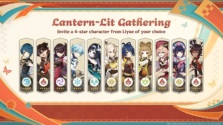 В течение второй половины патча проходит ивент Талисманы весны, который длится две недели. За его прохождение копите очки. Достигнув планки в 1200 очков, вы можете выбрать одного из 11 четырехзвездочных персонажей Ли Юэ. Для этого зайдите в меню события и кликните на вкладку «Праздничный ажиотаж».