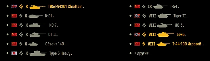 ● Эксклюзивную премиум и акционную технику 8-10 уровней;