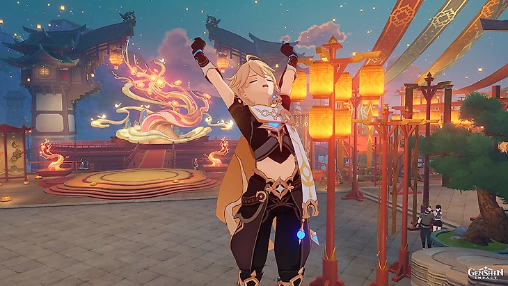 Для воссоздания потребуются «Небесные фонари», которые можно купить у бабули Шань на площади напротив алхимического стола в Ли Юэ и Гидро Путешественник. Нужно подойти к боссу, активировать все баффы саппортов и перед использованием взрыва стихий Путешественника зайти в инвентарь и поставить множество фонариков. Чем мощнее ПК – тем больше можно ставить. И ульта взорвет фонарики так, что каждый из них нанесет урон.
