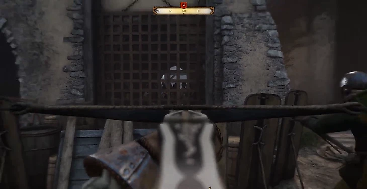 Там вы столкнетесь с врагом, перелезающим через стену. Для его устранения используйте арбалет.