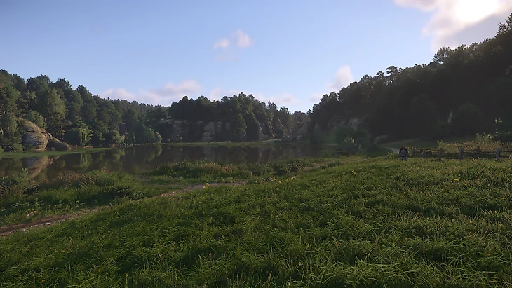 Я обожал оригинал, поэтому от новой игры вообще дурею – в том числе благодаря визуалу. На PS5 в режиме качества Kingdom Come 2 местами кажется фотореалистичной. Только взгляните на эти траву, воду, деревья, отражения. Такую красоту легко спутать с реальностью.