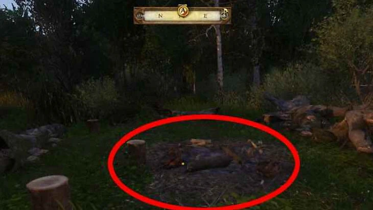 Отправляйтесь к отмеченной точке в болотистой местности северо-восточнее Сазавы. Перейти реку удобнее всего в ее северо-восточной части. Достигнув указанного места, разведите костер – это запустит важную сюжетную сцену.