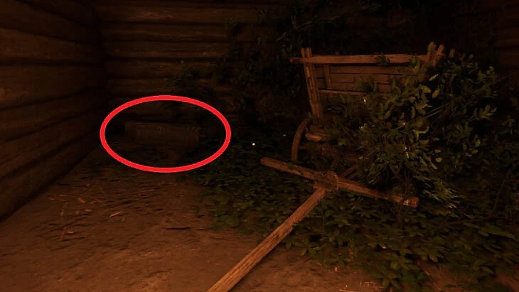Дождитесь удобного момента, когда страж остановится возле сарая – это позволит бесшумно обезвредить его со спины. После устранения спрячьте тело в сарае. Теперь путь к запертой двери напротив свободен. Замок на двери несложный, но будьте готовы к более серьезному испытанию – сундуку с вашими вещами.