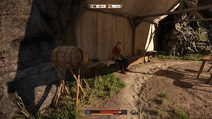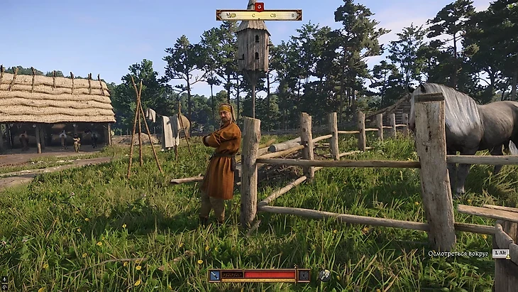 Теперь можете пройти к конюшням. Неподалеку от них стоит мужчина в оранжевом кафтане. Он предложит вам пройти за ним, чтобы поделиться с вами полезной информацией. На деле конечно же никто ничего вам не расскажет, поэтому можно сразу же разворачиваться и попробовать найти конюха. В разговоре с ним нужно пройти проверку любым навыком. Если вы ее пройдете, то конюх поделится с вами полезной информацией: лошади были отбиты паном у разбойников, которые разбили лагерь неподалеку.