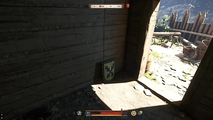 Как только он уходит, вам нужно пройти мимо второго стражника, который сидит на лавке. Двигайтесь вперед, ближе к зданию, в которое вам необходимо попасть. У входа стоят два работника, а на вышке будет еще один стражник. Проще всего попасть внутрь – кидая камни. Внутри вы найдете несколько полезных улик, оружие, порох и щит панов Липы.