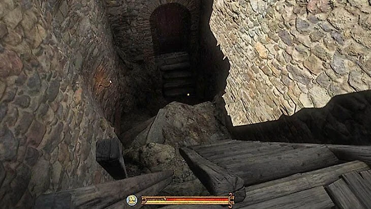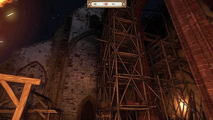 Действуйте быстро после разговора с нападавшим. Спускайтесь с лесов, перепрыгивая между уровнями для экономии времени, но следите за шкалой выносливости Индро – пустая шкала при прыжках приведет к повреждениям. Доберитесь до лошади и скачите к ферме возле монастыря.