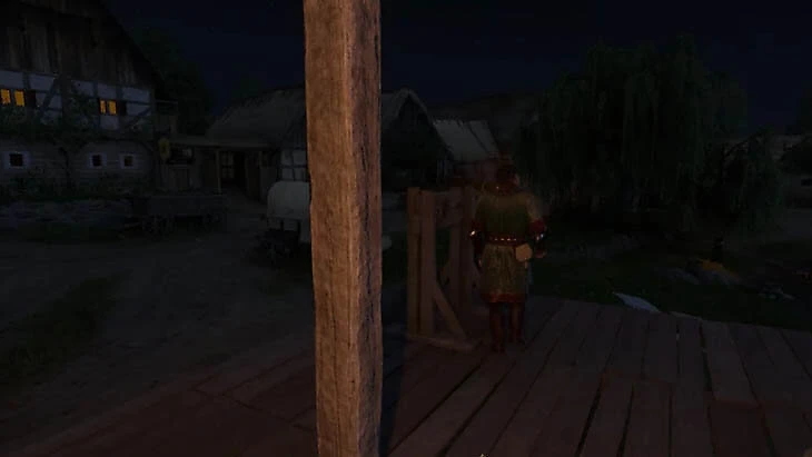В Мышковицах на центральной площади находится Янош, закованный в колодки. Чтобы освободить его быстро и без затрат, дождитесь ночи. Затем отвлеките стражника: спрячьте факел, приблизьтесь к нему и отойдите к каменной арке. Когда охранник подойдет вплотную, достаньте факел – он сразу направится в казарму. Пока стражник уходит, успейте взломать сложный замок на колодках.
