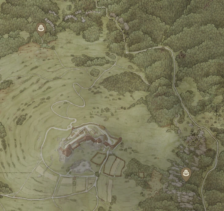Валериана растет в окрестностях замка Троски. Ингредиент можно купить у Аранки в цыганском лагере и у травника в северной части от замка Троски (верхний значок на скриншоте ниже).