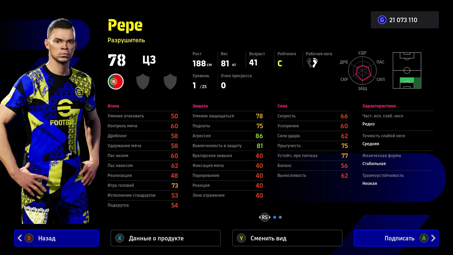 В eFootball 2025 можно улучшать способности футболистов, поэтому недорогие карточки очень полезны для создания стартового состава в режиме «Команда мечты». Особенно хороши возрастные звезды – у них приличные характеристики и большой набор навыков.