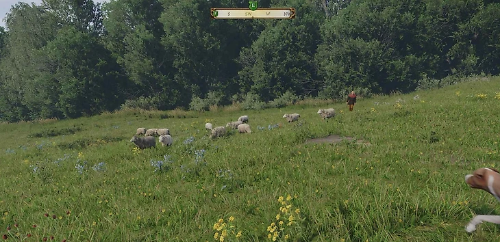 Олбрам предложит вам следующую задачу — выгнать овец с пастбища. Вам нужно будет вывести 6 овец в лес. Это можно сделать, просто следуя за овцами. Если пастух будет мешать, вы можете обезоружить его.