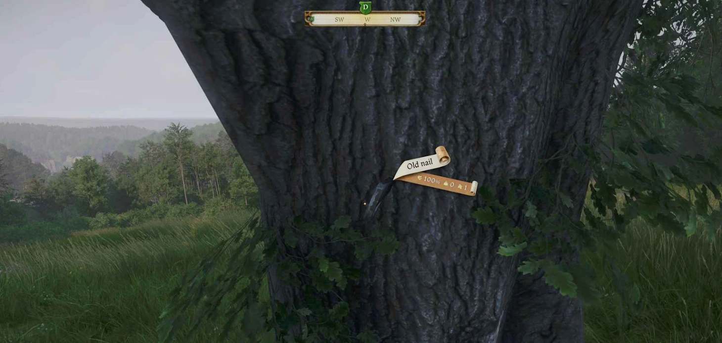 В хронике упоминается пограничный столб. Отправляйтесь на пастбище, где вы найдете дерево с гвоздем. Взаимодействуйте с ним, чтобы изучить. Если хотите, вы можете переместить гвоздь на другое дерево, чтобы поддержать одну из деревень, но для достижения «Перемирия» оставьте его на месте.