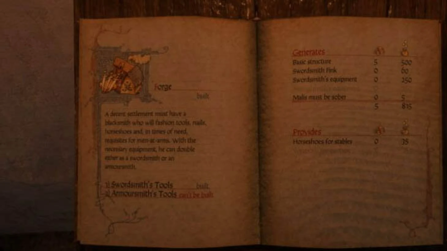 Кузница – 700 грошей плюс 35 при наличии караульного дома/конюшни