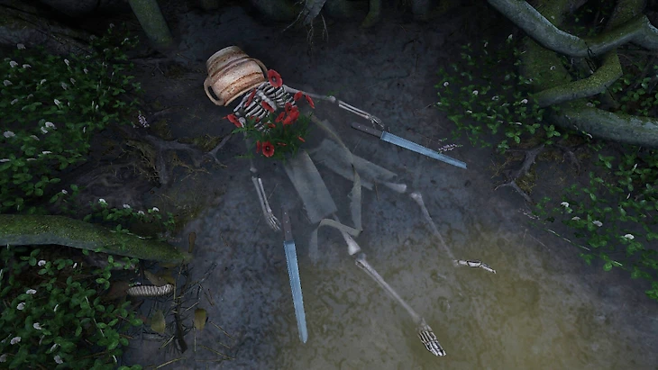 В юго-западном углу региона Троски, недалеко от мельницы у Семина, разработчики спрятали особую пасхалку. За полянкой в лесу можно найти скелет с горшком на голове, лежащий в тени большого дерева. Рядом аккуратно расположены два меча, а из останков пророс красный мак. Эта мрачная, но трогательная сцена – отсылка к легендарному игроку Let Me Solo Her из Elden Ring. В 2022 году он прославился тем, что помогал другим игрокам, в одиночку побеждая сложнейшего босса игры – Малению.