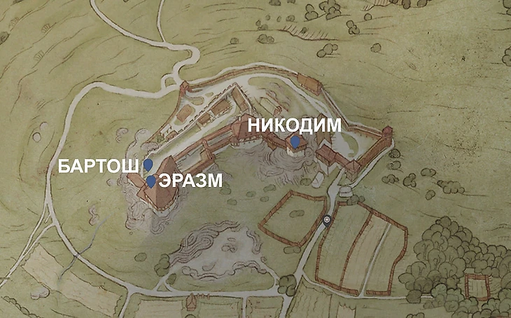 Еще три учителя находятся в замке Троски. Это Черный Бартош (воин в черных доспехах), отец Никодим (тот самый священник, укравший четки) и писец Эразм. У Бартоша обучение стоит 100 грошей, у остальных – 500.