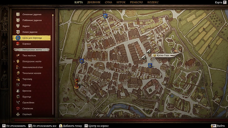 На карте Куттенберга тоже есть несколько учителей. В Ратборже после выполнения дополнительного задания «Драконьи кости» появится возможность учиться у отца Грознаты. Он обучает на уровне подмастерья и просит за свои услуги 1500 грошей.