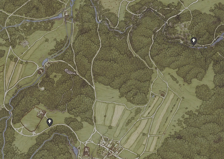 Придорожные часовни можно найти по всей карте на дорогах, у церквей, кладбищ и других важных для христиан мест. Они отмечены особым значком на карте. К ним нельзя телепортироваться напрямую.