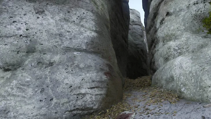 Под каменной аркой тропа приведет к расщелинам справа, отмеченным кровавыми следами. Через систему углублений, поднявшись на уступ, вы найдете пещеру с Марикой и раненым Богушем.