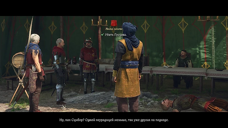 Также вы можете пойти по пути алхимика, осмотреть тело и узнать, чем отравили Чертана. Оказывается, использовали яд «Поцелуй смерти», а у Степана в палатке обнаружатся доказательства в виде ингредиентов.