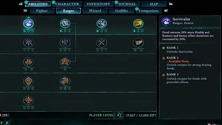 Повышенное восстановление здоровья. Навык усиливает восстанавливающие свойства пищи на одну пятую часть, затрагивая как здоровье, так и магическую энергию. Особым преимуществом становится возможность носить неограниченное количество провизии. Учитывая высокую доступность еды в игре, этот навык помогает существенно сэкономить на покупке лечебных зелий.