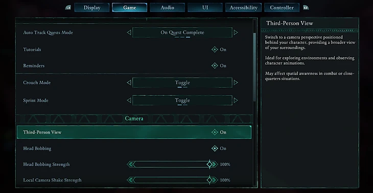 Вид от 3 лица в Avowed работает хорошо. Хотя анимации лазания и прыжков могут показаться неуклюжими, передвижения по поверхности земли выглядят плавно, включая уклонения в бою. Наведение на цель может затруднить сбор вещей с поверженных противников, поскольку круг прицела довольно небольшой. Однако, в момент приближения к предмету, появится подсказка, даже если прицел не был идеально настроен. Точность остается аналогичной, как и при игре от 1 лица, особенно с учетом замедления времени при прицеливании. Некоторые пользователи выбирают вид от 1 лица для более глубокого погружения. Если вы испытываете дискомфорт или укачивание при прохождении в этом режиме, то желательна регулировка интенсивности «покачивания головы» до 50% или отключение этой настройки. Эти настройки расположены в меню, непосредственно перед настройкой вида от 3 лица.