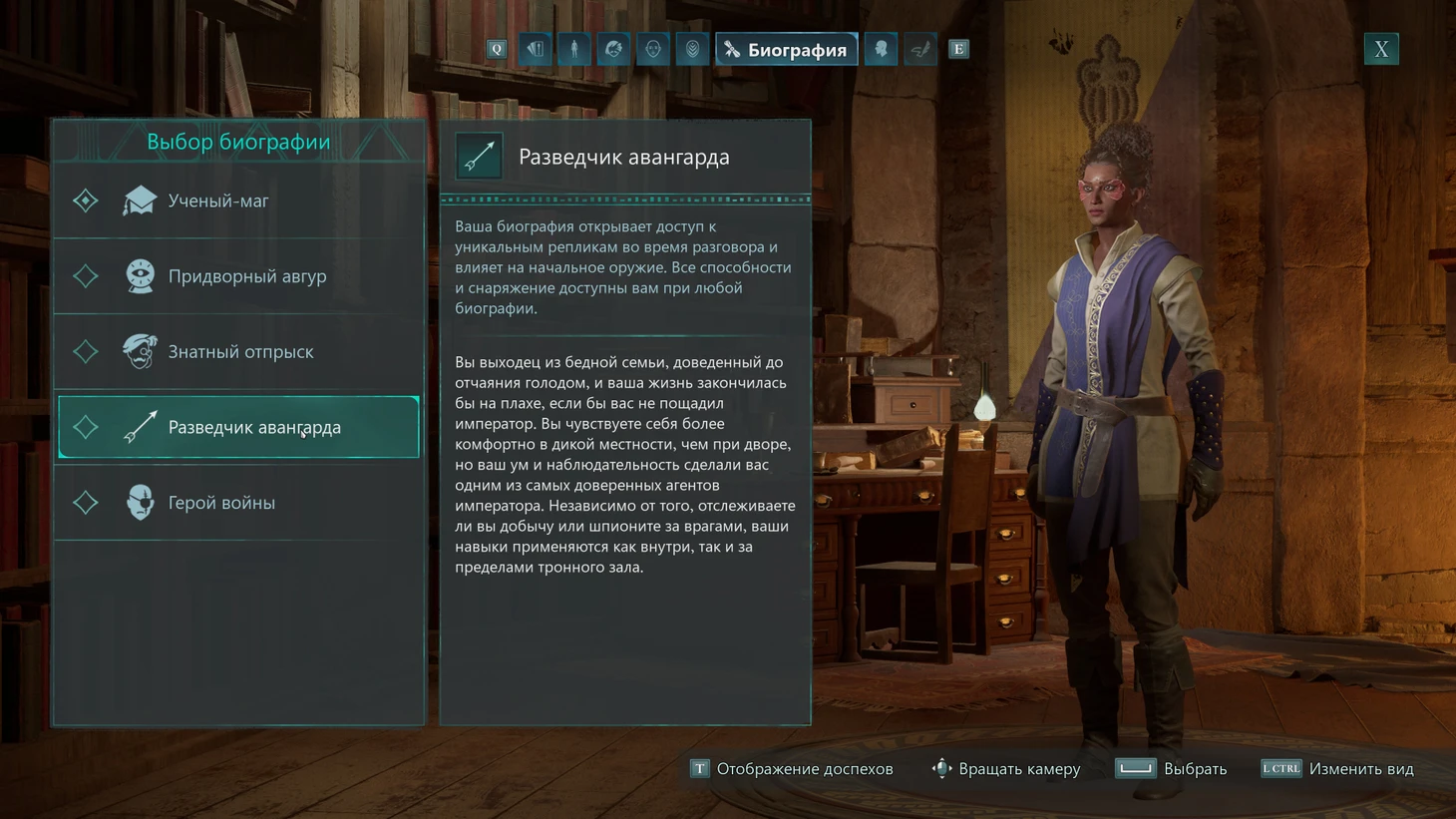 Если хотите играть за воина, мага или шпиона, выберите соответствующие классы. А если еще не определились с билдом, возьмите предысторию знатного отпрыска – этот класс позволит экспериментировать и даже создать мага, который лупит врагов в ближнем бою. Классы разведчика и придворного авгура предназначены для более опытных игроков, которые знают, какие очки лучше комбинировать для своего прохождения.