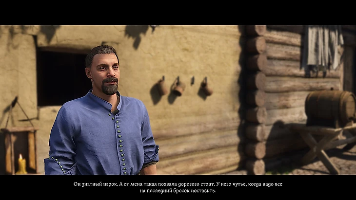 Если вы помылись и постирали одежду перед диалогом, то, скорее всего, у вас получится пройти проверку и узнать, что Микуш частенько заглядывал в Биланы, чтобы поиграть в кости с местными. Вернитесь в деревню и поговорите с Черником – мужчиной в яркой фиолетовой рубахе. Он расскажет об увлечении Микуша азартными играми. Его диалог изобилует проверками, можете просто заплатить ему 100 грошей, чтобы он все рассказал.