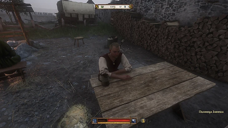 Следующий – Завиша. Купите у корчмаря 5 шт. алкоголя и вручите ему, потому что он не дерется трезвым. У него в диалоге передачи предметов необычный значок бесконечности, можете проверить, сколько в него влезет. Если этого диалога нет, то это баг, перемотайте время или вернитесь позже. В бою он очень агрессивно атакует и контратакует, но в бою с ним работает зажимание в угол и клинчи. Пока он отходит от клинча, у вас будет время на удар без контратаки с его стороны.