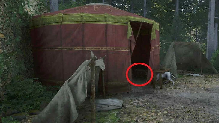 Исследуйте территорию лагеря в поисках приметной красной палатки. Внутри нее, в правой части помещения, располагается искомый сундук. С помощью найденного ключа откройте его и извлеките главную цель поисков – Реликварий Цимбурков.