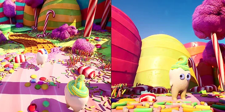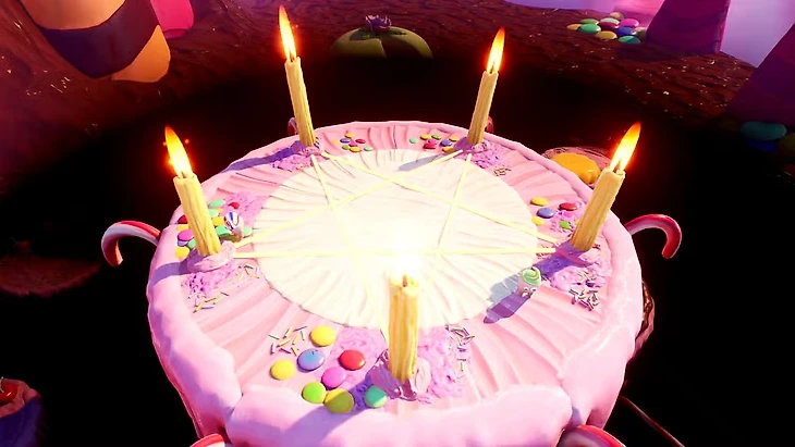 Birthday Cake последний побочный сюжет в Split Fiction и один из самых необычных. Мио и Зои принимают в нем форму маленьких зубов с большими глазами и поначалу путешествуют по красочному детскому миру. Мы расскажем как пройти все этапы истории, где можно будет увидеть разные сладкие угощения и придется сразиться с боссом. Сюжет начинается после решения головоломки Dragon Soul, где игроки возвращают четыре души дракона статуе, разбив четыре металлических яйца. Обратите внимание на платформу слева. Прыгайте через пропасть, где в воздухе висит мармеладный медвежонок и попадете в портал побочного задания Birthday Cake.