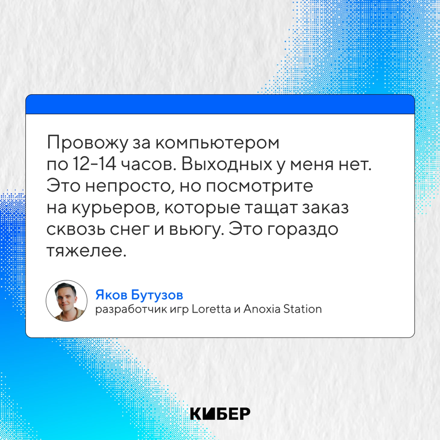 Игры Бутузова получают высокие оценки, прилично продаются – и все равно не делают его успешным и богатым. Потому что издатели ставят жесткие условия или откровенно кидают, а разработка требует 14-часового дня без выходных.