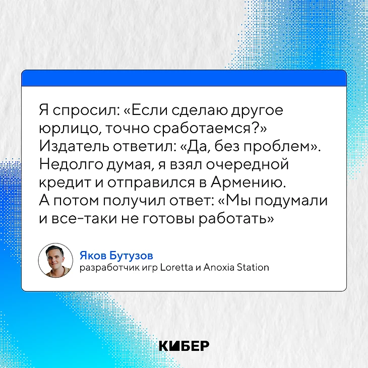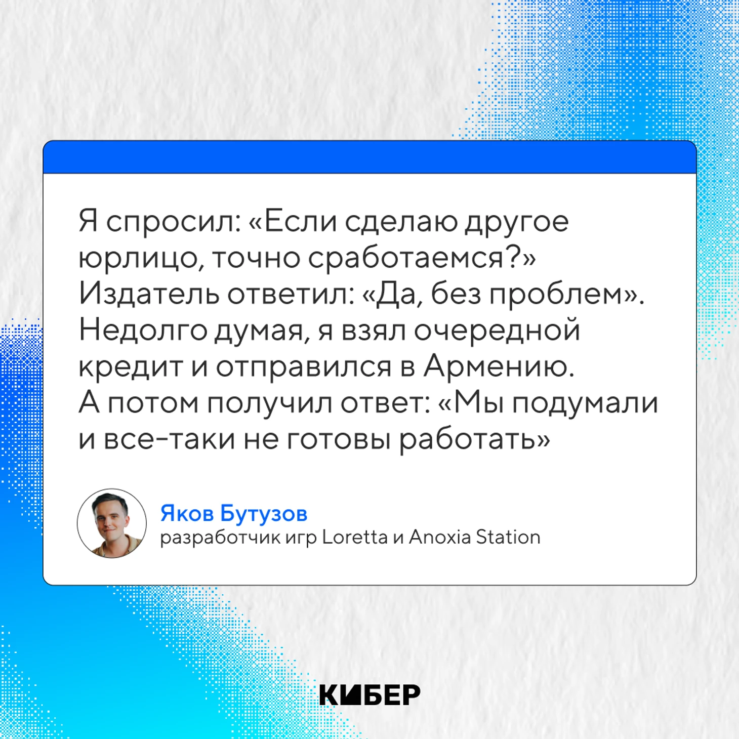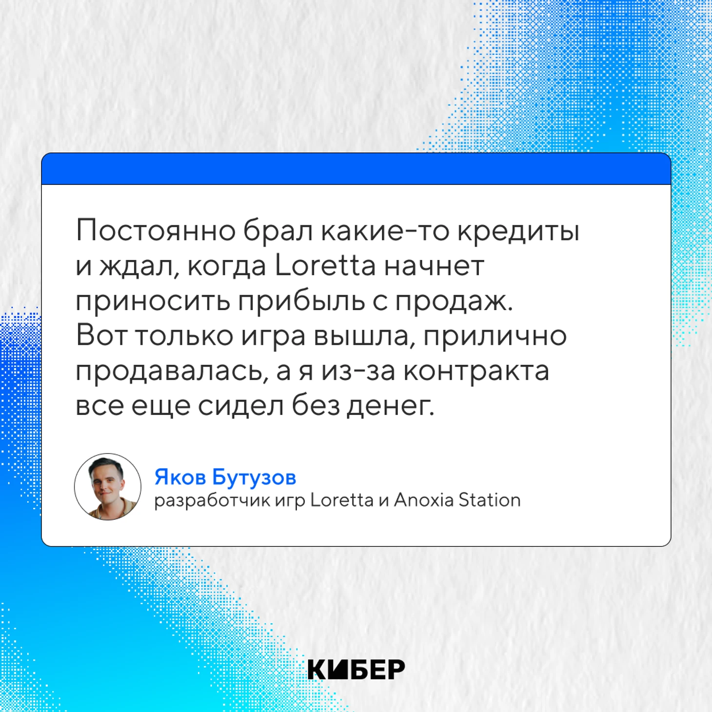 «В договоре была прописана скромная зарплата. Жить на нее не получалось, постоянно брал какие-то кредиты и ждал, когда Loretta начнет приносить прибыль с продаж. Вот только игра вышла, получила хорошие отзывы, прилично продавалась, а я из-за контракта все еще сидел без денег.