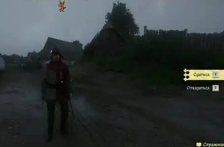 При встрече со стражей можно попробовать решить конфликт мирным путем. После сдачи (Alt → 1 в бою или Q → 1 до боя) доступны следующие варианты: