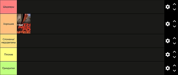 Ну и в конце, маленькое объявление. Вы же любите всякие тир-листы, да? Так вот, после каждой рецензии на очередной Need for Speed, я буду распределять игры этой серии по тир-листу. Выглядеть он будет вот так: